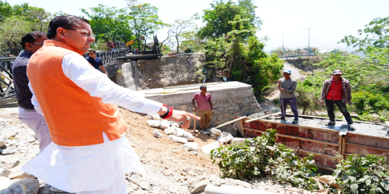 मुख्यमंत्री ने मसूरी रोड स्थित शिव मंदिर के निर्माणाधीन पुल का स्थलीय निरीक्षण किया