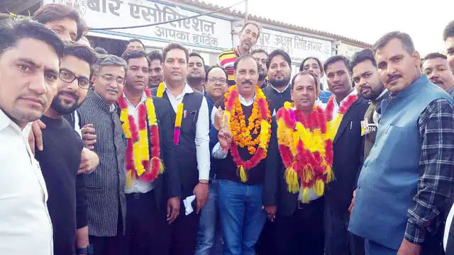 काशीपुर। जसपुर बार एसोसिएशन का चुनाव शांतिपूर्ण तरीके से संपन्न हो गया है। इस दौरान दिग्विजय सिंह को अध्यक्ष और सलीम अहमद को सचिव चुना गया। चुनाव के बाद विजयी प्रत्याशियों के समर्थकों ने जुलूस निकालकर खुशी का इजहार किया। शनिवार को अध्यक्ष समेत पांच पदों के लिए सुबह आठ बजे से मतदान शुरू हुआ। दो बजे तक करीब 115 अधिवक्ताओं ने अपने मताधिकार का प्रयोग किया। पर्यवेक्षक हरीश नेगी के नेतृत्व में अपराह्न तीन बजे से मतगणना शुरू हुई। पांच चरणों में हुई मतगणना के बाद चुनाव अधिकारी बिजेंद्र चौधरी, प्रदीप कुमार, मनदीप चौधरी ने परिणाम घोषित किए। अध्यक्ष पद पर भूदेव सिंह को पांच, देवेंद्रजीत सिंह को 48 और दिग्विजय सिंह को 61 वोट मिले। दिग्विजय सिंह को अध्यक्ष घोषित किया गया। उपाध्यक्ष पद पर राजकुमार को 69, सत्यपाल जोशी को 44 मत मिले। सचिव पद पर अनिल जोशी को 44, राकेश को 23 और सलीम अहमद को 54 वोट पड़े। संयुक्त सचिव पद पर संदीप कुमार को विजयी घोषित किया गया। संदीप को 60 और जुल्फुकार को 52 मत पड़े। महिपाल सिंह कोषाध्यक्ष चुना गया। उन्हें 60 और विकास अरोरा को 53 वोट मिले। वहीं, तेज प्रकाश, मो अजहरूद्दीन, संजय शर्मा, यशपाल सिंह, जावेद अख्तर, मो.शोएब को निर्विरोध कार्यकारिणी सदस्य घोषित किया गया। अधिवक्ताओं ने नवनिर्वाचित कार्यकारिणी को माला पहनाकर स्वागत किया। यहां विधायक आदेश चौहान, शैलेंद्र मिश्रा, गुलाम साबिर, भावेश मित्तल, रवि चौधरी, सुंदर पाल, रविश जैन, औरंगजेब, शाकिर, जाकिर, जावेद, अंकित, बाल किशोर, मुनेश कुमार आदि रहे।