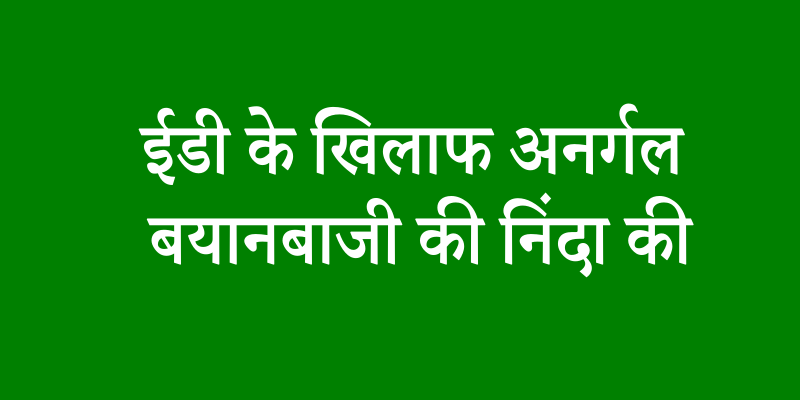 ईडी के खिलाफ अनर्गल बयानबाजी की निंदा की