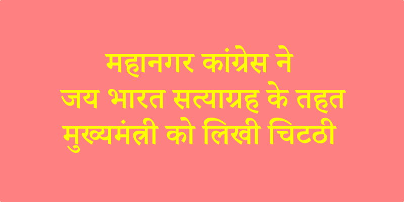 महानगर कांग्रेस ने जय भारत सत्याग्रह के तहत मुख्यमंत्री को लिखी चिटठी