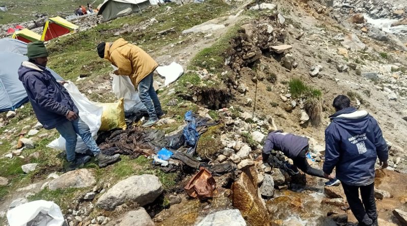 अधिशासी अधिकारी नगर पंचायत केदारनाथ चंद्रशेखर चौधरी ने अवगत कराया कि जिलाधिकारी महोदय द्वारा दिए गए निर्देशों के क्रम में नगर पंचायत केदारनाथ एवं सुलभ इंटरनेशल के पर्यावरण मित्रों द्वारा संयुक्त रूप से गोल चौराहे से हिमलोक टेंट काॅलोनी (जीएमवीएन) के गेट तक मार्ग किनारे तथा मंदाकिनी नदी के तटों पर विशेष सफाई अभियान चलाया गया। उन्होंने बताया कि सफाई अभियान के दौरान लगभग ढाई क्विंटल प्लास्टिक कचरा 30 थैलों में एकत्रित किया गया।