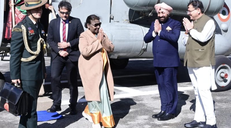 उत्तराखंड के राज्यपाल लेफ्टिनेंट जनरल गुरमीत सिंह (से.नि) और मुख्यमंत्री श्री पुष्कर सिंह धामी ने की राष्ट्रपति की अगवानी। राष्ट्रपति द्रौपदी मुर्मु ने बुधवार को उत्तराखंड स्थित भू-बैकुंठ धाम पहुंचकर भगवान बदरी विशाल के दर्शन किए। मंदिर में करीब 25 मिनट तक पूजा करते हुए राष्ट्रपति ने देश की सुख समृद्धि और खुशहाली की कामना की। बदरीनाथ धाम आगमन पर उत्तराखंड के राज्यपाल लेफ्टिनेंट जनरल गुरमीत सिंह (से.नि) और मुख्यमंत्री पुष्कर सिंह धामी ने राष्ट्रपति की अगवानी की। राष्ट्रपति श्रीमती द्रौपदी मुर्मु कड़ी सुरक्षा व्यवस्था की बीच भारतीय वायुसेना के हेलीकॉप्टर से बुधवार को सुबह 10ः20 बजे बद्रीनाथ आर्मी हेलीपैड पहुंची हेलीपैड पर राज्यपाल लेफ्टिनेंट जनरल गुरमीत सिंह (से.नि) और मुख्यमंत्री पुष्कर सिंह धामी, बद्री केदार मंदिर समिति के अध्यक्ष अजेन्द्र अजय, अन्य जनप्रतिनिधियों सहित जिलाधिकारी हिमांशु खुराना एवं पुलिस अधीक्षक रेखा यादव ने राष्ट्रपति का स्वागत किया। यहां से राष्ट्रपति काफिले के साथ मंदिर पहुंची और मंदिर में बद्री विशाल की वेद पाठ एवं विशेष पूजा की। बद्रीनाथ के मुख्य पुजारी रावल ईश्वर प्रसाद नंबूदरी एवं तीर्थ पुरोहितों ने वैदिक मंत्रोच्चार के साथ विधिवत पूजा संपन्न की। मंदिर समिति के अध्यक्ष अजेन्द्र अजय, उपाध्यक्ष किशोर पंवार एवं अन्य पदाधिकारियों ने राष्ट्रपति को बद्री विशाल का प्रसाद एवं अंग वस्त्र भेंट किया। मुख्यमंत्री पुष्कर सिंह धामी ने मंदिर परिसर में राष्ट्रपति को भोजपत्र पर बनी बद्रीनाथ मंदिर की प्रतिकृति, आरती और स्थानीय उत्पादों की टोकरी भेंट की। भू-बैकुंठ धाम की अलौकिक सुंदरता देख राष्ट्रपति अभिभूत दिखीं। मंदिर में पूजा दर्शन के बाद राष्ट्रपति बद्रीनाथ से श्रीनगर के लिए प्रस्थान किया।