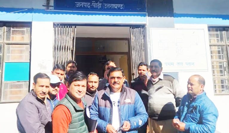 पौड़ी में कर्मियों ने काला फीता बांधकर जताया विरोध