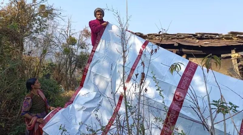 रेडक्रॉस ने छत ढकने को दिया तिरपाल