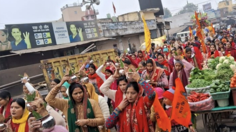 भागवत कथा से पूर्व निकाली गई कलश यात्रा, भगवानपुर विधायक ममता राकेश भी हुई शामिल