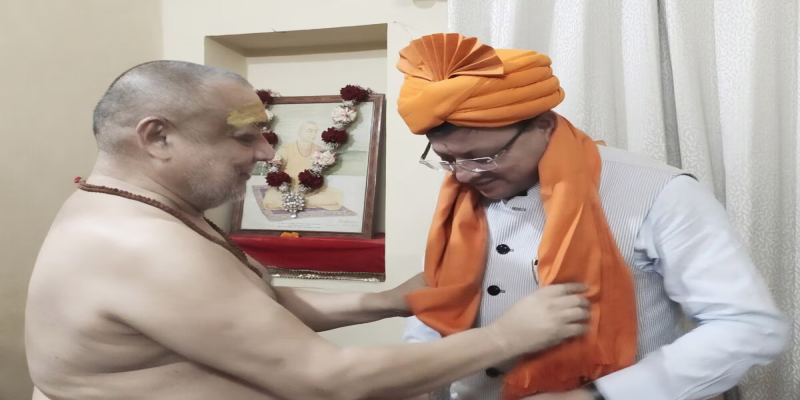 सीएम धामी ने जगद्गुरु आश्रम में शंकराचार्य स्वामी राजराजेश्वराश्रम महाराज से आशीर्वाद लिया