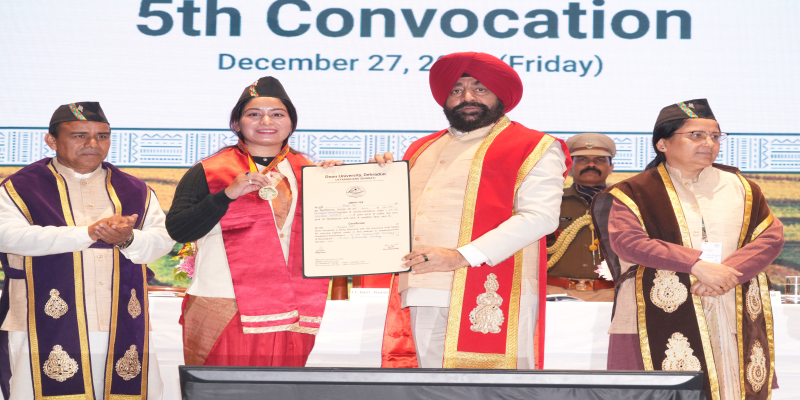 राज्यपाल गुरमीत सिंह ने दून विश्वविद्यालय के पंचम दीक्षांत समारोह में विद्यार्थियों को उपाधियां और मेडल प्रदान किए
