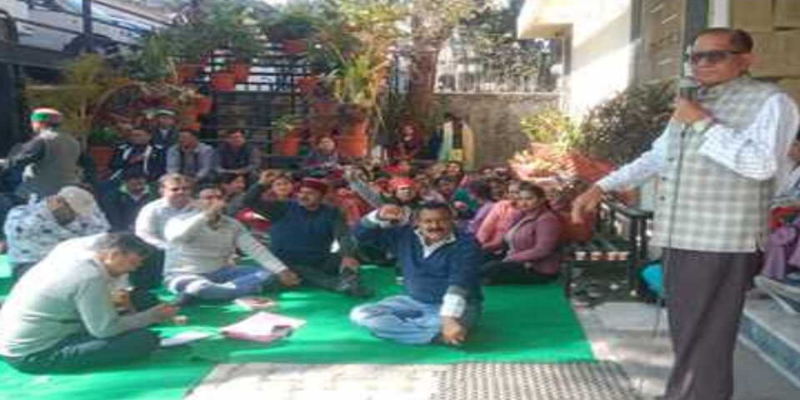 पेयजल निगम के कर्मचारियों का नियमित वेतन को लेकर धरना प्रदर्शन