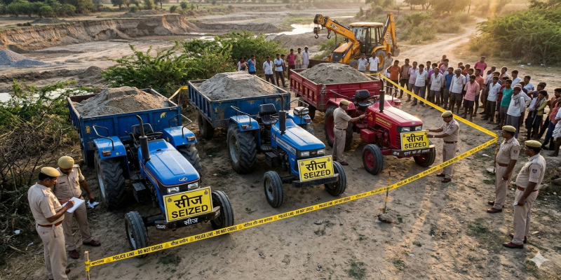 अवैध खनन मामले में तीन ट्रैक्टर सीज