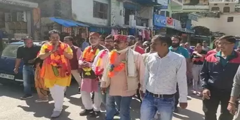जोशीमठ पहुंचे नौटियाल का ढोल नगाडों से स्वागत