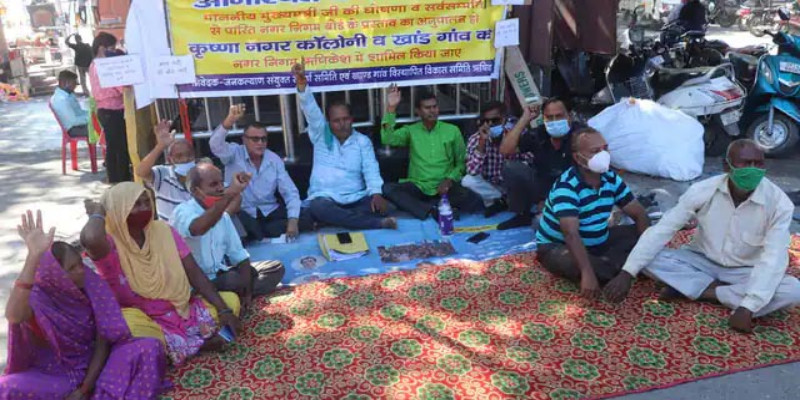 नगर निगम में शामिल करने को लेकर दिया धरना