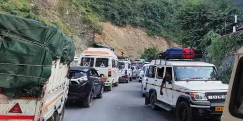 श्रीनगर से धारी देवी की ओर चमधार से डुंगरीपंथ तक कई दिनों से जाम से लोगों का बेहाल हो रहा है। दरअसल यहां पर हाईवे के ऊपर पहाड़ी से भूस्खलन होने के कारण सड़क तंग हो चुकी है। लोगों का कहना है कि पूर्व में एनएच लोनिवि ने यहां पर वाहनों के आने-जाने के लिए मार्ग बना दिया था, लेकिन उसके बाद पहाड़ी से आ रहे मलबे को पूरी तरह से हटाने व मार्ग को ठीक करने की ओर गंभीरता से ध्यान नहीं दिया जा रहा है। जिससे यहां पर वन-वे हो गया है। मार्ग पर बड़ी संख्या में वाहनों की आवाजाही होने के कारण यहां पर पुलिस को ट्रैफिक नियंत्रण में दिक्कतें आ रही हैं। स्थानीय निवासी ओमकार नौटियाल का कहना है कि यहां पर बने डेंजर जोन में पत्थरों के गिरने का भय भी बना हुआ है, जिससे जाम में फंसे रहने के दौरान कभी भी बड़ी दुर्घटना हो सकती है। उन्होंने कहा कि जिन लोगों का यहां से रोज आवाजाही करनी होती है उन्हें रोज इस समस्या से जूझना पड़ रहा है। एसएसआई रणवीर रमोला ने बताया कि स्थिति को देखते हुए शनिवार को पांच और जवानों को यहां पर ड्यूटी पर लगाया गया, जबकि पूर्व से यहां पर चार जवान ड्यूटी पर थे। कहा अन्य दिनों की अपेक्षा शनिवार को स्थिति नियंत्रण में रही।