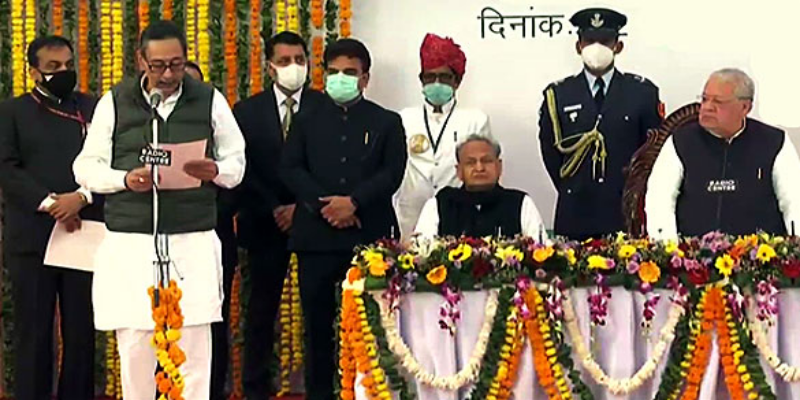 मुख्यमंत्री अशोक गहलोत ने तीन मंत्रियों के संगठन में जाने के कारण इस्तीफा ले लिया जिसमें स्वास्थ्य मंत्री रघु शर्मा, राजस्वमंत्री हरीश चौधरी एवं शिक्षा राज्यमंत्री गोविंद सिंह डोटासरा शामिल है। शपथ ग्रहण समारोह में प्रदेश कांग्रेस के प्रभारी महासचिव अजय माकन, पूर्व उप मुख्यमंत्री सचिन पायलट, प्रदेश कांग्रेस कमेटी के अध्यक्ष गोविंद सिंह डोटासरा भी उपस्थित रहे।