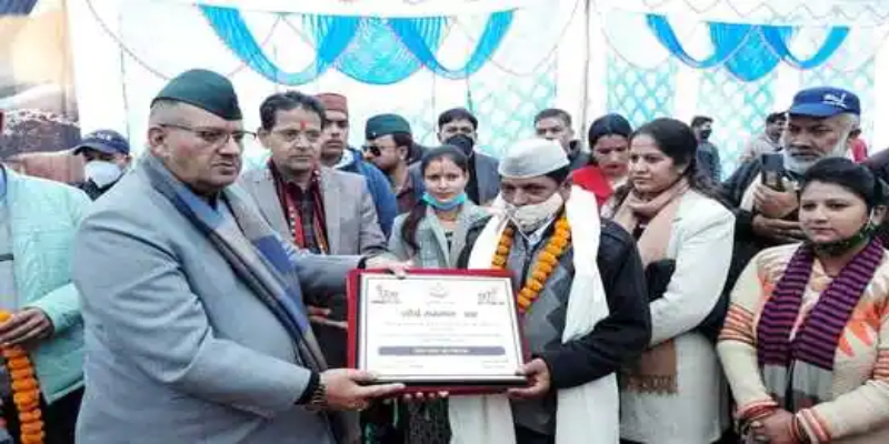 देहरादून के गुनियाल गांव मे सैन्य धाम निर्माण के लिए शहीदों के गांवों की मिट्टी एकत्र करने के लिए आयोजित सैनिक सम्मान यात्रा के दौरान चम्बा में आयोजित सम्मान समारोह में सैनिक कल्याण मंत्री गणेश जोशी ने 42 शहीदों के परिजनों को ताम्र पत्र एवं शॉल भेंट कर सम्मानित किया।