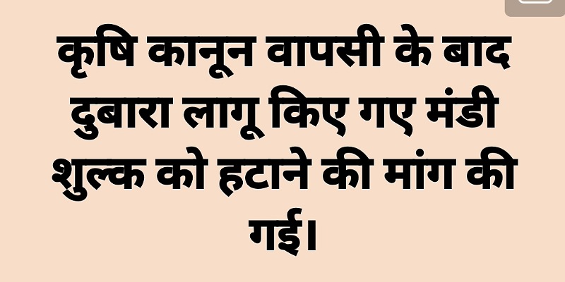 कृषि कानून वापसी के बाद दुबारा लागू किए गए मंडी शुल्क को हटाने की मांग की गई।