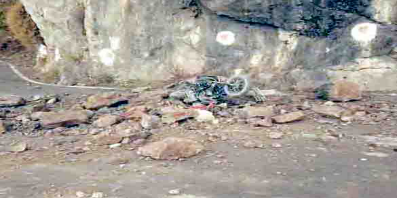 पहाड़ी से गिरे बोल्डर की चपेट में आकार बाइक सवार एक युवक की मौत, दूसरा घायल