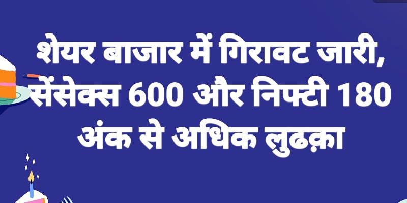 शेयर बाजार में गिरावट जारी, सेंसेक्स 600 और निफ्टी 180 अंक से अधिक लुढक़ा