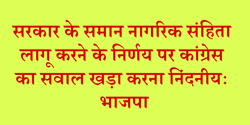 सरकार के समान नागरिक संहिता लागू करने के निर्णय पर कांग्रेस का सवाल खड़ा करना निंदनीयः भाजपा