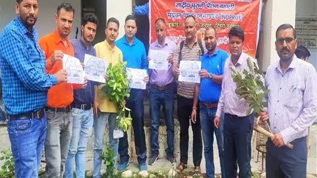 कीर्तिनगर में पुरानी पेंशन बहाली को वृक्षारोपण किया