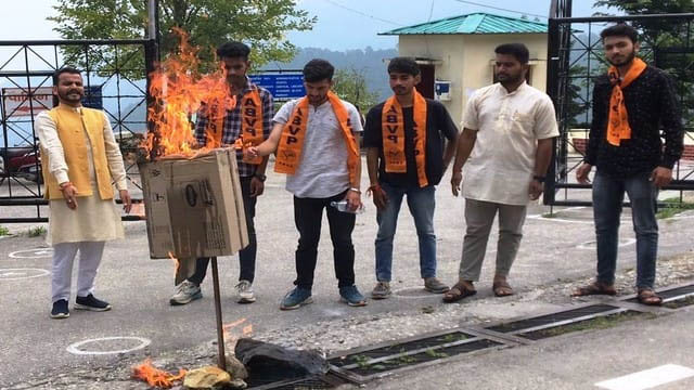 पेपर लीक मामले में एबीवीपी का भ्रष्टाचारियों के खिलाफ प्रदर्शन